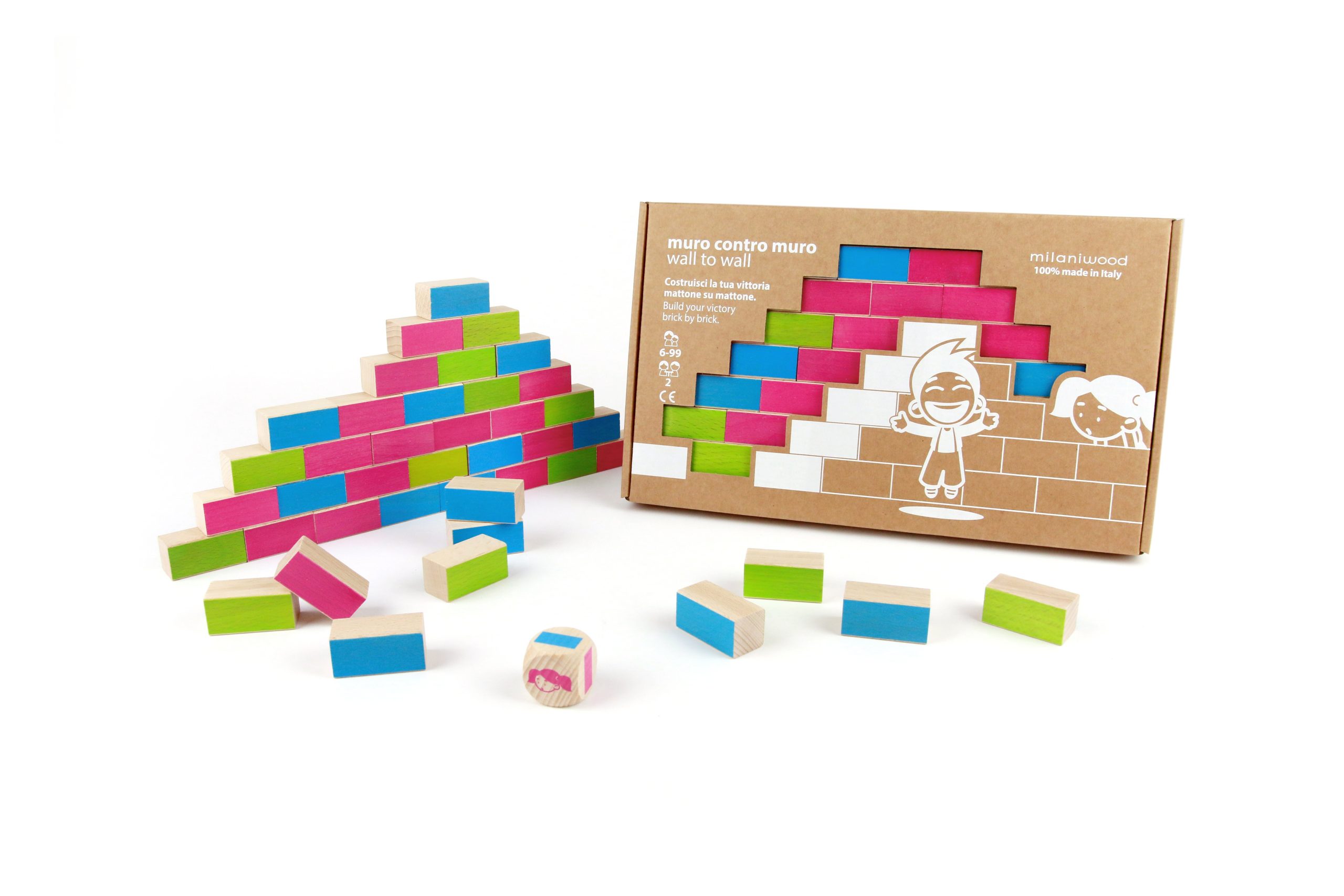 Muro contro muro è un gioco in legno sicuro, certificato FSC®, ecologico e realizzato con colori atossici. Made in Italy.